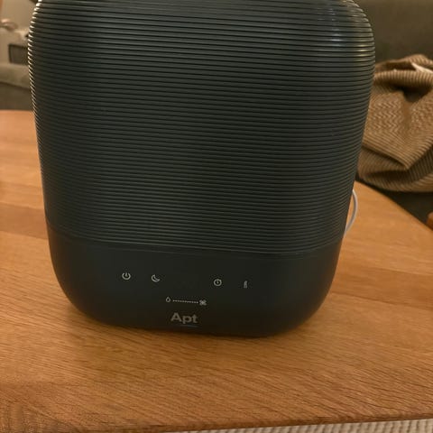 Selger APT luftfukter. Brukte den da vi bodde i nyere leilighet med tørr luft. Syntes den fungerte bra 😊. Nå bor vi i eldre hus uten tørr luft og har ikke lengre bruk for den. Brukt i ca 6 mnd.