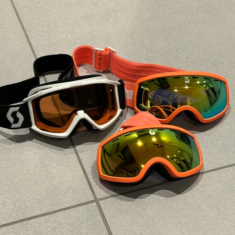 Ulike slalåmbriller, enkelte er brukt en del, andre er nesten ikke brukt
