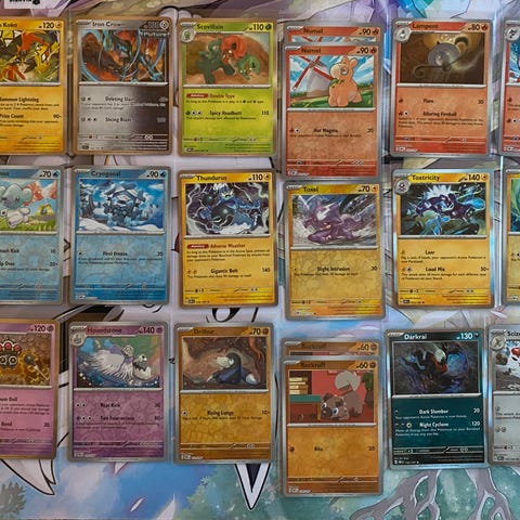 Singles fra diverse scarlet & violet sett selges. Alle kort har sleeve og er oppbevart i perm. Kjøper betaler frakt. Sjekk gjerne ut mine andre annonser for flere samlekort, samleobjekter fra 90-tallet etc. Frakt kan kombineres.