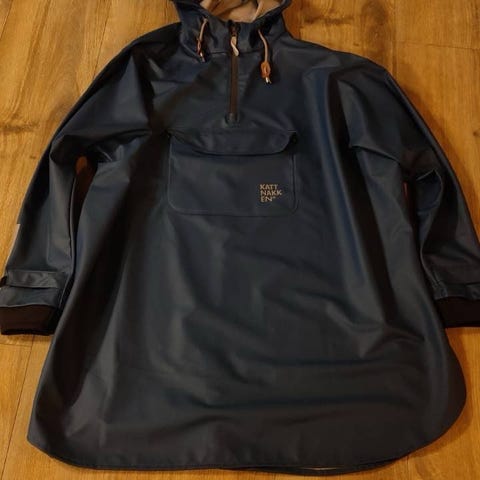 Kattnakken regnponcho sleges.