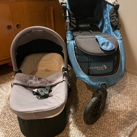 Har blitt brukt til flere barn, men har mer bruk igjen. Kan brukes fra nyfødt, med liggedel, eller som ekstravogn i barnehagen.