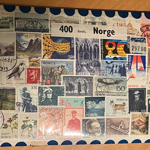Norsk Filatelistforbund Norske frimerker 1997 samling med frimerker i album, inkludert ulike motiver og valører. Passer for frimerkesamlere og de som ønsker å dokumentere norske frimerker fra 1997. Samlingen selges i form av fire like hefter (slik vist på bildet) til 1000kr.