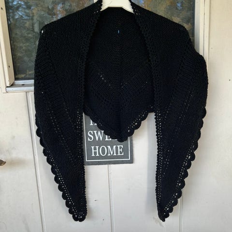 Nystrikket stort bunadsjal i sort merinoull selges for 1000,-kr