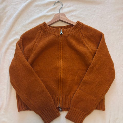 Brun, høyhalset bomullsgenser i str XL, men kan like godt passe til en L