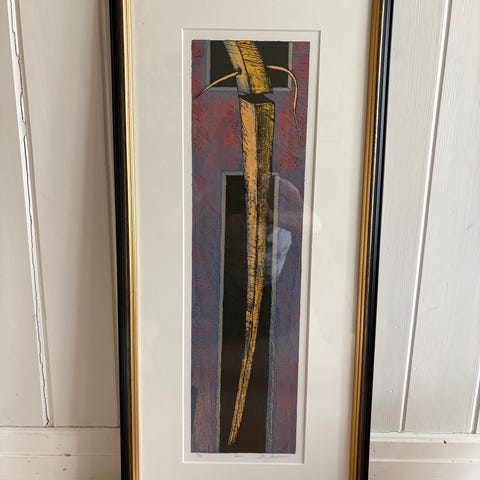 Maleri signert Stig Månsson, innrammet. Motiv av en person i profil, utført med realistisk stil. Ramme i tre med lys brunfarge. Egnet for dekorasjon og samling.