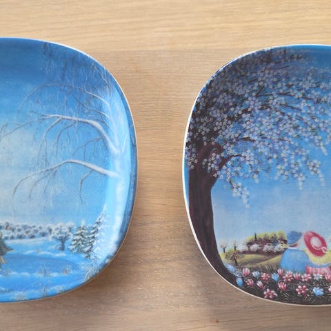 Dekorativ veggplate med oppheng på baksiden. Ikke beregnet for bruk til mat.