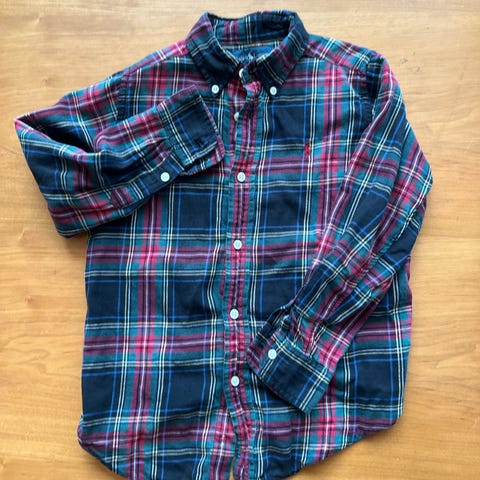 Ralph Lauren skjorte for barn i størrelse 110. Skjorten er blå med rutemønster og laget av bomull. Meget pent brukt.