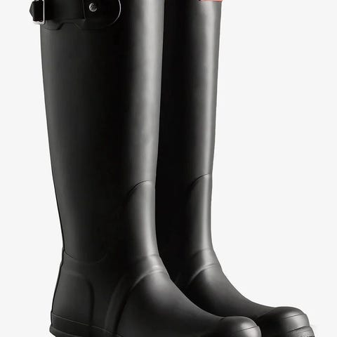 Hunter regnstøvler i størrelse 38, svart farge. Laget for å gi beskyttelse mot vann og gjørme, egnet for bruk i våte værforhold.
