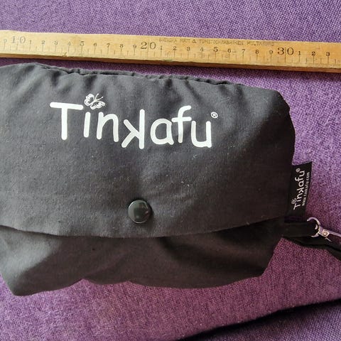En vår-/sommer Voksi pose som var grå som nå er solbleket. Bortsett fra fargen så er den i fin stand uten skader. Kjøper man litt fargestoff så er den god som ny.