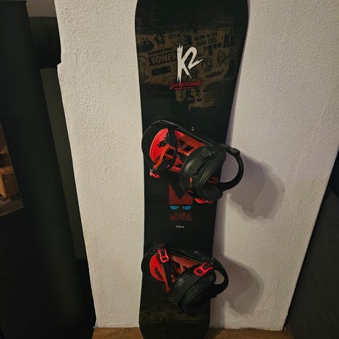 K2 Vandal snowboard med fargerikt grafisk design. Med bindinger
