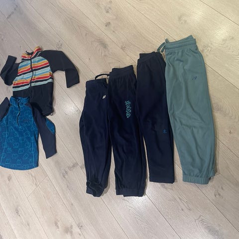 Klespakke med fleece, ull og ytterklær. De fleste av klærne er str 116. Noen av plaggene er str 110, men stor i str. Alt brukt samtidig.
