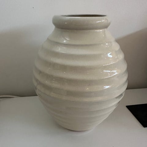 høyde ca 31 cm, bredde ca 17 cm øverst :)