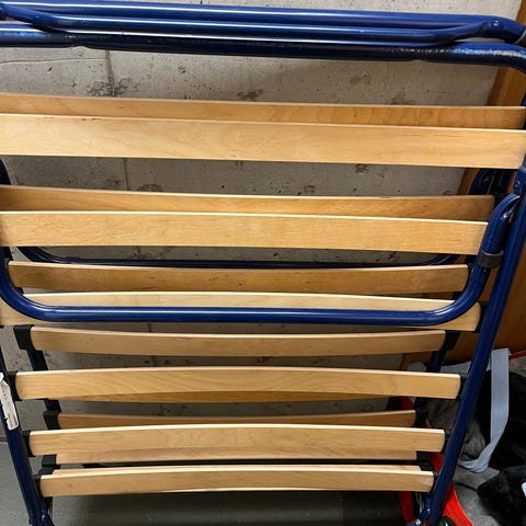 Gir bort en enkeltseng med rammemadrass. Sengen er hel og fungerende, men brukt. Passer fint som gjesteseng, i bod, på hytte eller for deg som trenger en enkel løsning.