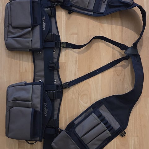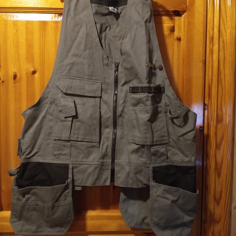Håndverksvest, snekkervest med lufting på baksiden, hempe for verktøy på sidene og store lommer i front. 60% bomull og 40 % polyester. Ubetydelig brukt. Str L. Merke Viio, produsert i Sverige. Ingen synlige bruksmerker. Skal du til med oppussing vil denne gjøre det enklere for deg 👍