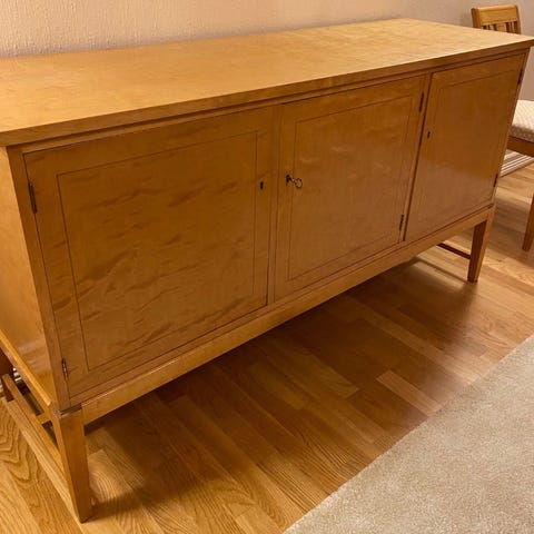 2 like sjenk i flammebjørk brukt som dekor i en spillefilm. Står ledig fra den 12. mars 2026. Må hentes i Oslo. Pris kan diskuteres:)