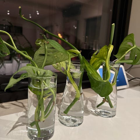 Monstera adansonii/monkey mask. Store, flotte stiklinger.