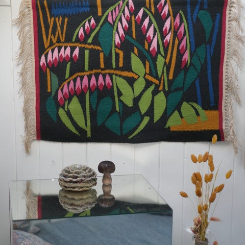 Søkeord: Retro, knyteteppe, knytteteppe, rye, floss, flosseteppe, håndlaget, håndknyttet, Rauma, berber, veggteppe, ullteppe, vintage, Rya, Sellgren, ull
