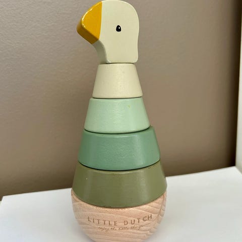 Little Dutch lekestativ med treleker for barn. Lekestativet er laget i tre og inkluderer hengende leker som en kylling, en blomst og et lam. Passer for små barn og kan brukes til å stimulere barnets motoriske ferdigheter og sanser.