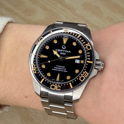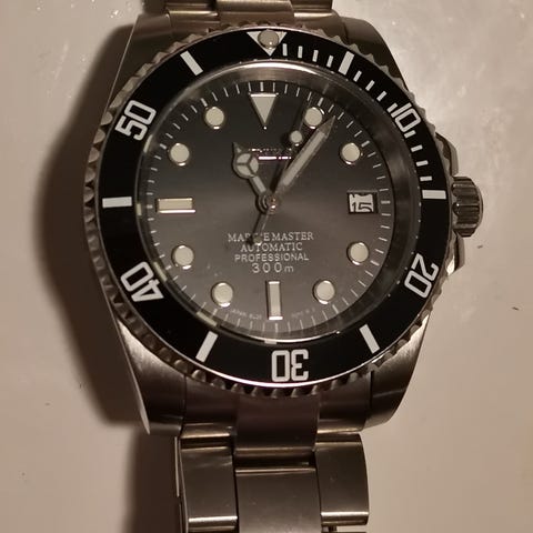 I am selling a few of my collection of watches. This Nethuns Scuba 500 Automatic Diver watch was bought at Klokkegiganten back in March 2020. The original Nethuns 500 & Aqua bracelet 2 was bought at Serious Watches back in January 2021. I used it nicely in rotation with other watches (20+) and mainly with the fantastic stainless steel bracelet. The bracelet has screws to remove the links like you find in high-end watches. Excellent manufacturing quality, in fact better that many other watches I have 2-3 times the price from entry level swiss brands. The movement is a Seiko NH35 , reliable and easy to service by any watchmaker. It runs better than the manufacturer (Seiko) specifications but I normally adjust it every 2-3 weeks because it runs a few seconds faster per day. There is a bit of lume missing at the 12 o'clock mark but that can be filled with lume kits or at any watch repair shop. The original rubber strap is almost new since it was to large for my wrist and therefore I bought the bracelet.
