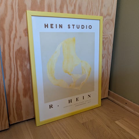 Rebecca Hein poster med lys rosa ramme. Mål: 51,5x42 cm.