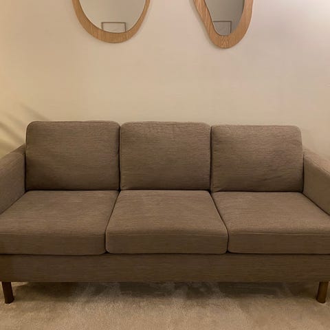 Oslo hjørnesofa med både sjeselong og åpen ende avslutning er perfekt når du ønsker en større sofa med flere muligheter til å sitte med beina høyt. Oslo sofaserie er velegnet til for eksempel deg som skal etablere deg før første gang eller ønsker en prisvennlig sofa til hverdagsbruk. Her får du en myk og behagelig sofa med tidsriktig beige tekstil til en flott pris. Det samlede designet er tidløst og passer godt inntil det meste av farger. Denne varianten har åpen ende på venstre side og sjeselong på høyre. Med puter som kan brukes på begge sider . Selges grunnet ønske og kjøpe en ny sofa grunnet barn i vente 😌 Ta kontakt om det er noe du lurere på. Hatt den i 5 mnd