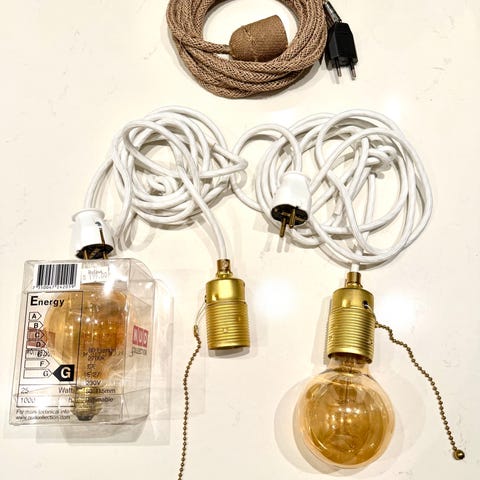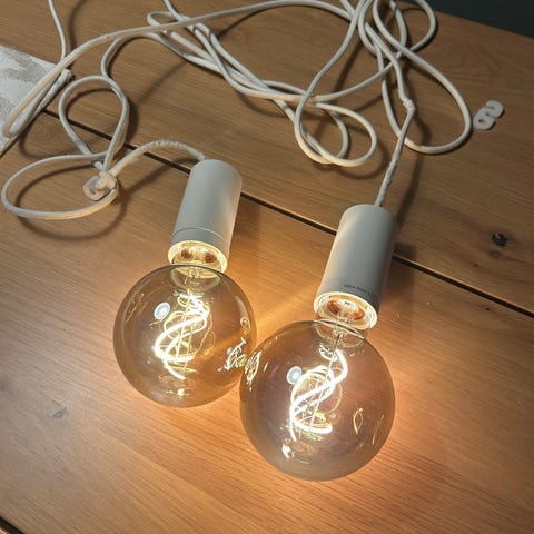 Lampe 8 cm sokkel, 3 m og 40 cm lang ledning, max 15 w.