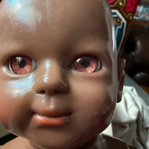 Selger dukken jeg lekte mye med som barn på 60-tallet. Den kan bli badet, gredd og frisert. Ben, armer og hodet kan beveges, den lukker øynene når den sover.