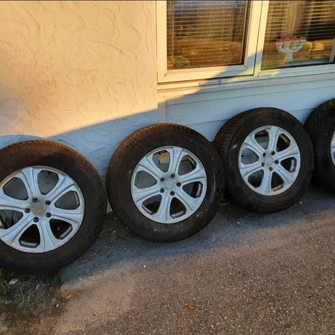 Selger komplett hjulsett til Volkswagen: 4 felger + 4 dekk i størrelse 205/55 R16.