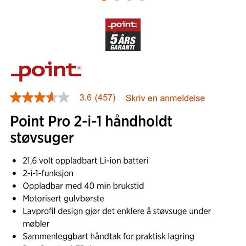 Kjøpt ny i fjor og brukt den lite da vi foretrekker støvsugeren med kabel. Selges derfor videre.