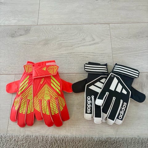 Selger unna 4 par splitter nye Adidas Predator keeperhansker. Str. 9,5. Passer både str 9 og 10 ut ifra hvor tett du liker at hanskene sitter.