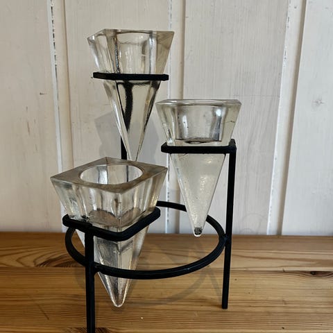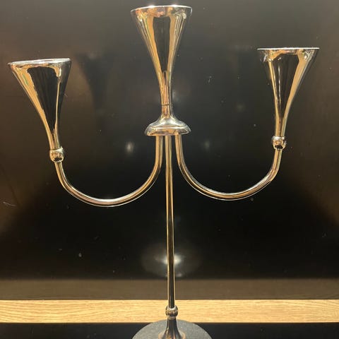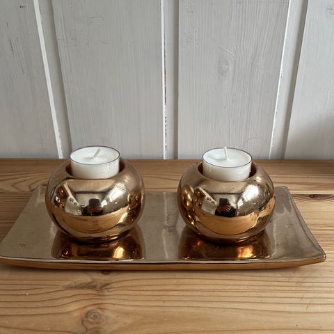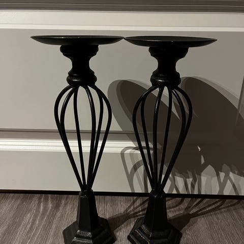 To stk lysestaker, 32 cm høye og 10 cm i diameter, selges kr 200,-