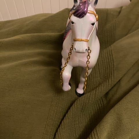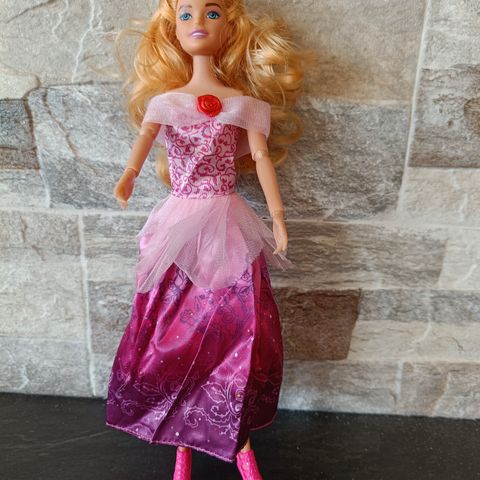 Dukken fra Et moteventyr. Den har to kjoler i en og en knapp med enten lys eller lyd (husker ikke). Batteriene må kanskje byttes.