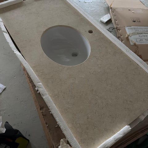 Rålekkker benkeplate i massiv granitt med integrert vask. 124cm lang og 56cm dyp