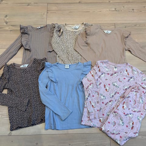 Pent brukt genser og 2 bukser i supermyk fleece fra Gullkorn design. Perfekt under ytterklær på kalde dager. Alt i størrelse 122/128. Kan hentes på Makrellbekken i Oslo eller sendes mot at kjøper betaler porto.