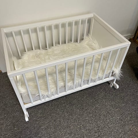 Pent brukt vugge selges. Madrass, høye dyne og sengetøy kan følge med om ønskelig