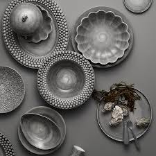 Kjøkken servise servering serveringsfat fat borddekking stort interiør metallic borddekor