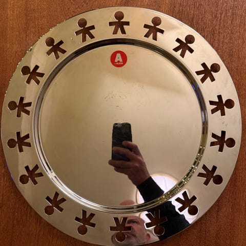 Stilig rundt brett med laserskåret kant designet av King-Kong teamet Stefano Giovannoni og Guido Venturini. Et symbol og ikon for speilpolert design.