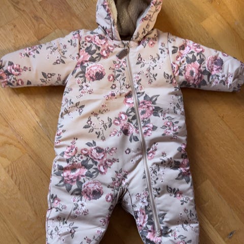 Nydelig og varm vinterdress til baby. Denne er i str 74/80, 9-12 mnd. Praktisk med avtagbare votter og sokker. Anbefales🤩
