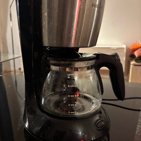 Kaffetrakter med glasskanne, vannivåindikator og deler i rustfritt stål. Egnet for tilberedning av kaffe i hjemmet eller på kontoret. Inkl. en pakke filter (åpnet) da den må ha egne filter fordi den er liten.