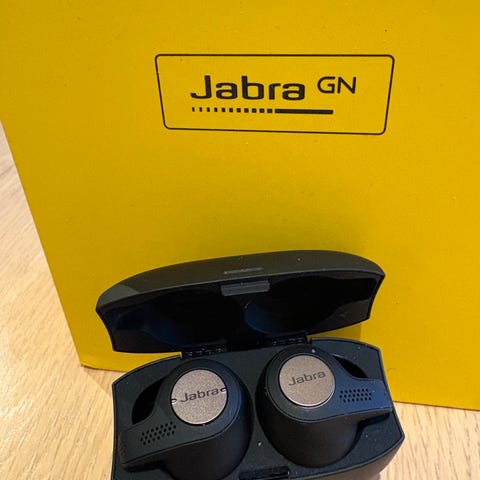 Selger et par Jabra Elite Active 75T. Ørepluggene er brukt, men i god teknisk stand. Ladeetuiet har noen kosmetiske riper (se bilder). De er IP57-sertifiserte (støv- og vannbestandig) og sitter godt under trening. Batteriet varer ca. 7 timer per lading, totalt ca. 28 timer med etuiet. Bluetooth 5.0 med multipoint (to enheter samtidig), aktiv støyreduksjon og HearThrough-modus. Ladeetui medfølger, USB-C-kabel følger ikke med. Nypris rundt 990 kr. Pris: 500 kr.