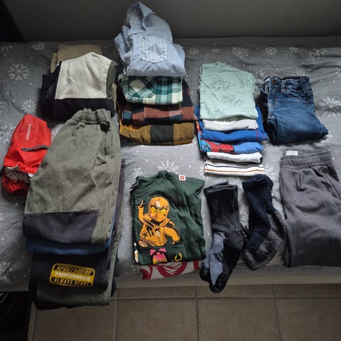 Selger klær i størrelse 6 år, 122/128 samt en genser i 134/140. En kaptein Sabeltann fleece jakke str 6 år, t- skjortene er i 122/128. En hettejakke i str 122 og minecraft morgenkåpe 122/128