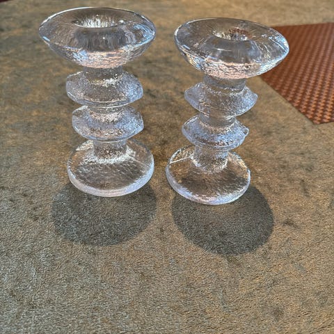Iittala vase i glass, kommer i to farger: lilla og rosa. Vaser har en rektangulær form med avrundede kanter. Passer til dekorasjon og blomsterarrangement.De er fine,ilke brukte og 18 cm høye.Ingen skader selvfølgelig.