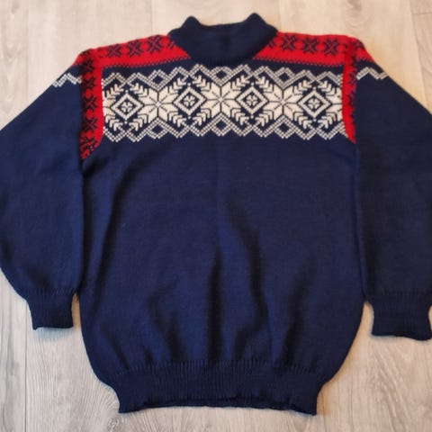 Kjempefin hjemmestrikket genser i myk ull. Tilsvarende str s/m. Ikke brukt.