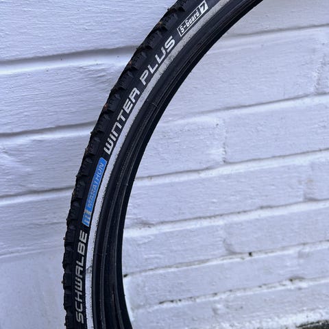 Sett med 2 Schwalbe Winter sykkeldekk, 28 tommer, 42-622. De er kjøpt seperat fra hverandre, så har ulik slitasje. Ene mangler noen pigger noen steder.
