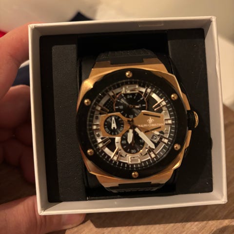 Selger en stilig gullfarget klokke fra Inex med Sort skive. Aldri brukt og fungerer som den skal.