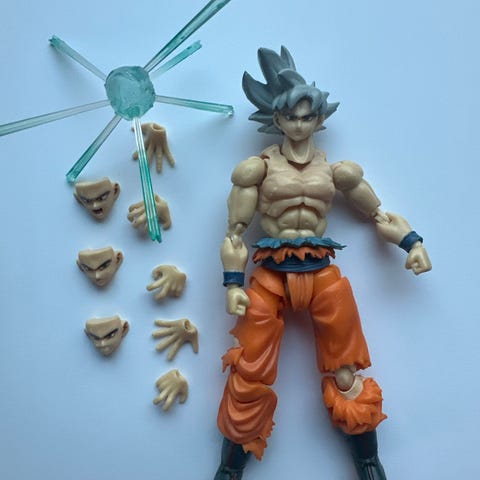 Det er Virgo Shun fra anime-serien Saint Seiya, Super Saiyan Goku , Pokémon-karakteren Mewtwo og Goku fra Dragon Ball-serien. Selges samlet , eller hver for seg .