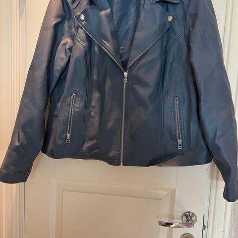 ONLY jakke i skinn, blå farge, størrelse 40 for kvinner. Jakken har glidelåslommer og en klassisk design som egner seg til hverdagsbruk.