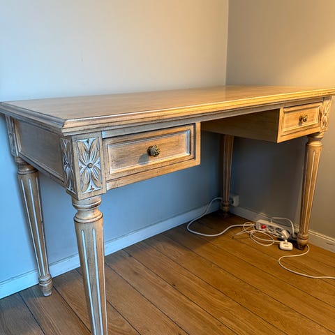 Veldig fint skrivebord som passer både til å brukes som hjemmekontor men til å kledde elegant en stua.