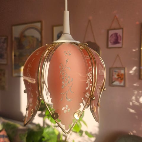 Kul lampe fra 70 tallet av messing og mørkt tre