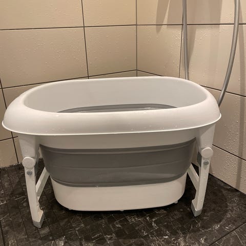 Badekar til baby som nytt. Det tar ingen plass når det ikke er i bruk.